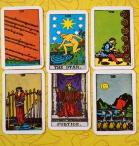 Back on track.  Did you miss me?  ; )  Sorry, about yesterday’s failure to post.  It’s up now so All is good.  I hope.  I’m sure of it.  I must have let my chariot ride me too far up and out.  I usually pull a card in tandem with the daily card.  The question I hold when I ‘pull’ the card from the deck is.  What might I be reminded of through this day that is for the highest good.  lately, I have been pull the ‘6’s, several of them repeatedly and yesterday I pulled the 2 of swords which I seem to pull often.  Anyone else pull a card for the day?  And what question do you ask?